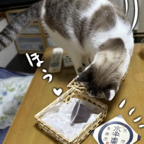皆様こんばんみ。『世界の猫は箱が好き』のお時間です。はい、素敵な水羊羹をいただきました。綺麗ねぇ。うんうん。うん?え??え?コメントありがとありがとう!普通の雨も秋も、日本からいなくなったのね。かなしみ。またポチッとしてくれてありがとね!#suzuri #suzuri ...