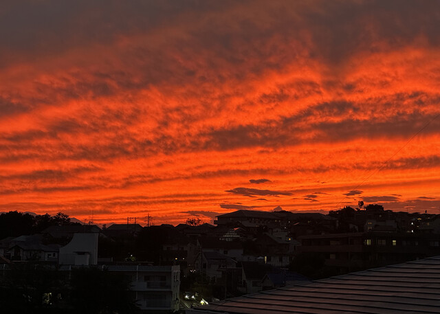 赤い赤い空 2025年10月08日 22:16 先月の赤い空。赤い赤い夕焼け。ちょっと怖かった。今日の赤い空。下に少し見えるのは、赤いユニフォームでサッカーしている小学生たち。赤い赤い夕焼け。今日のは、あまり怖くなかった。お散歩の帰りに立ち寄るギャラリー。犬と入れるギャララリーですよ。「ハイ、そこに座って。そのまま。」ってしたら、ギャラリーのマダムに「とってもお利口!!」ってたくさん褒めてもらいました。えへへ。 コメントありがとありがとう。栗をたくさん剥いたよ。えらい。 またポチッとしてくれてありがとね。SUZURIも見てね#suzuri #suzuriで販売中 タグ :#犬と猫どっちも飼ってると毎日たのしい < 前の記事次の記事 > コメント コメントフォーム 名前 コメント 記事の評価 リセット リセット 顔 星 情報を記憶 コメントを投稿する