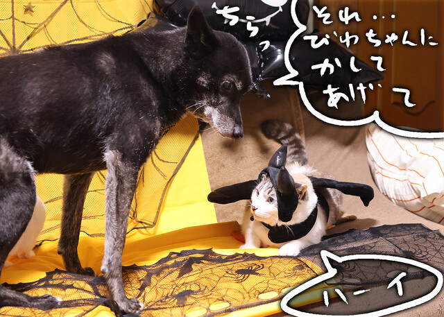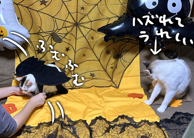 ハロウィン メイキング後編 2025年11月08日 23:16 カブの小悪魔の翼セットが羨ましいびわちゃん。んん?んんん?ンンン。小悪魔的な猫ちゃん、と言うよりかは悪魔・・・。ちょっと、うん、ちょっと、思ってたのと違うかもね?はずそうかね?衣装を外してもらったびわちゃんは、颯爽と、レースの蜘蛛の巣に突進していった。楽しそう。ヤる気だ・・・・。仕留めた・・・・。まぁ、このようにして撮影は終わりました。この後、高速で小道具を片付けます。小道具が増え続けるなぁ。コメントありがとありがとう早くカブ吉のエリカラはずしたいなぁ。毛よ、早く生えて。またポチッとしてくれてありがとねSUZURIも見てね#suzuri #suzuriで販売中 タグ :#犬と猫どっちも飼ってると毎日たのしい#メイキング < 前の記事次の記事 > コメント コメントフォーム 名前 コメント 記事の評価 リセット リセット 顔 星 情報を記憶 コメントを投稿する