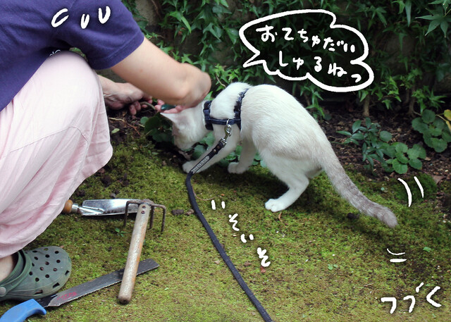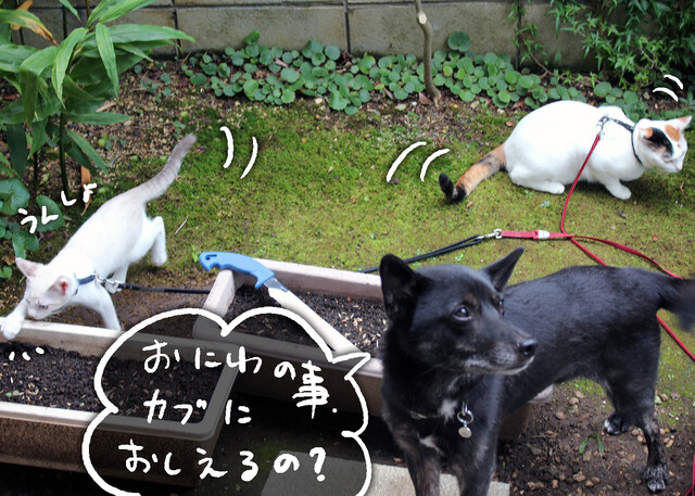 カブ吉、ハーネス着けて、お外に出るのはこれで2回目なので。