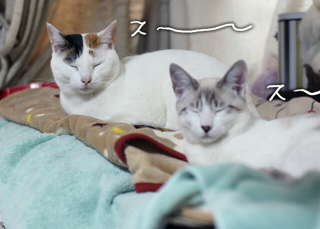 カブ吉、生後6ヶ月シンクロものまねをマスターする 2020年12月04日 23:50 産まれて半年がたったんですね。大きくなりましたねぇ。小学生男子っぽいですね。最近。ほう。どうぞ。 おお。ええ。なかなかのアルカイックスマイル寝でした。次回の公演をお楽しみに。コメントありがと!ろきさん、そうなの。風邪ひいちゃいそうだからやめて欲しい!ゆきねこさん、bridge使ったことないです!やってみますね。ありがとうございます!ポチっとしてくれた素敵なあなたは、今宵の夢でカブ吉に真似される。どこが似ているのか全く分からないが、かわいそうなので褒めてしまうところまでが夢。きょうもありがとでぃす タグ :#優しい猫#三毛猫#猫の水遊び < 前の記事次の記事 > コメント コメント一覧 (2) 1. りる 2020年12月05日 01:59 順調に姉弟似てきてますね。よしよし。 あれ?カブっ子おデコの模様また濃くなったかな? 0 piobi がしました 2. ろき 2020年12月05日 09:53 その内色も似てくる。 0 piobi がしました コメントフォーム 名前 コメント 記事の評価 リセット リセット 顔 星 情報を記憶 コメントを投稿する