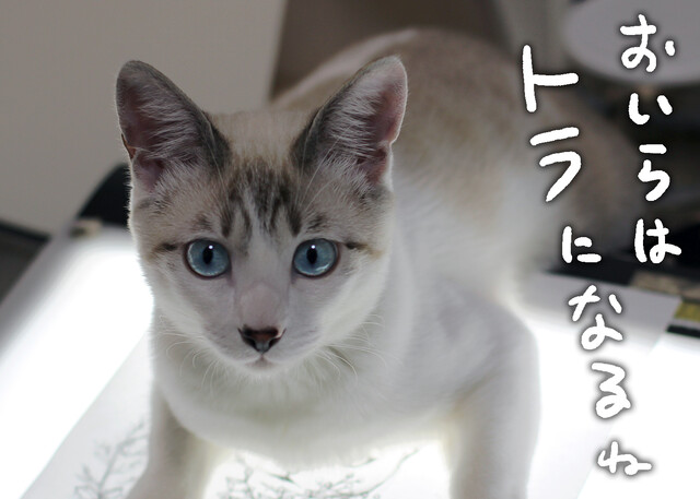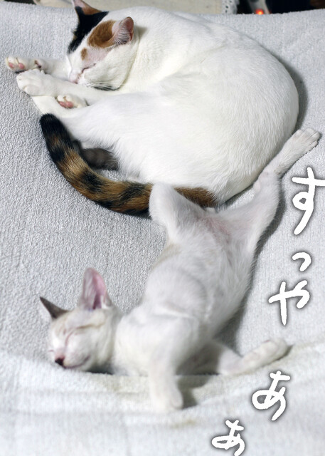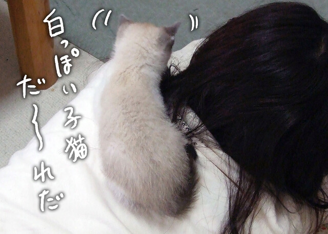 ポチっとしてくれた素敵なあなたは、夢の中で白っぽい小さな三毛猫の女の子の手を握る。