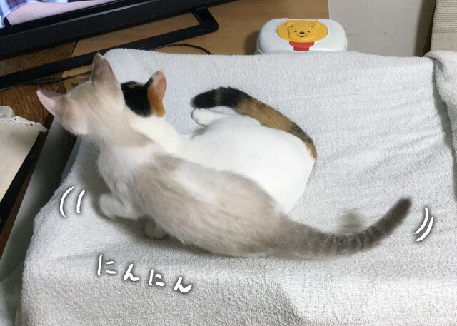 りるさん、うんうん。良いものよのぅ。まぁ猫の後頭部は全部良いものですなぁ。